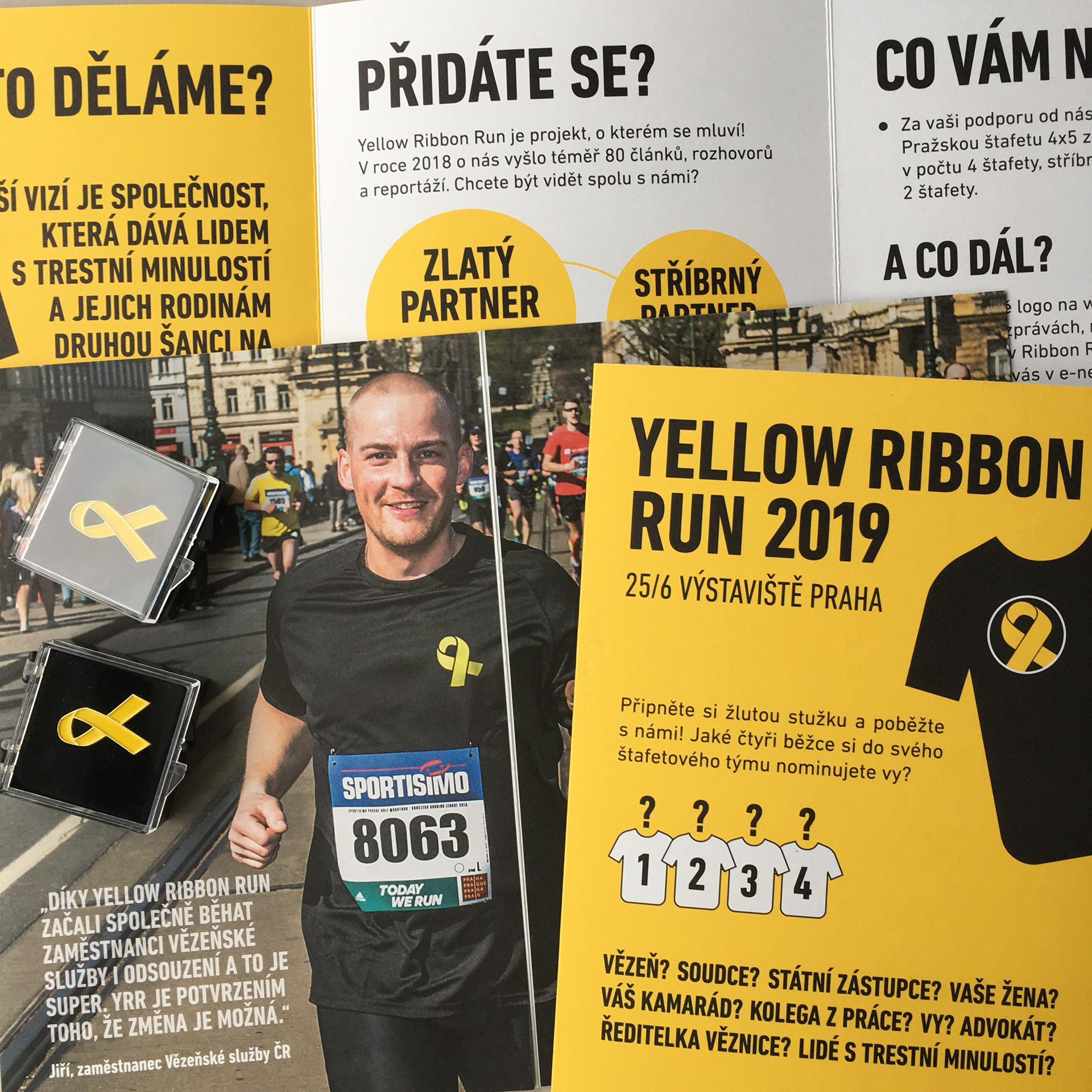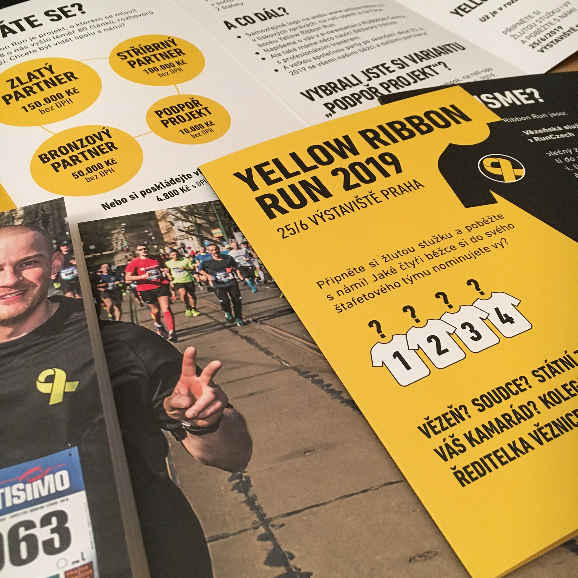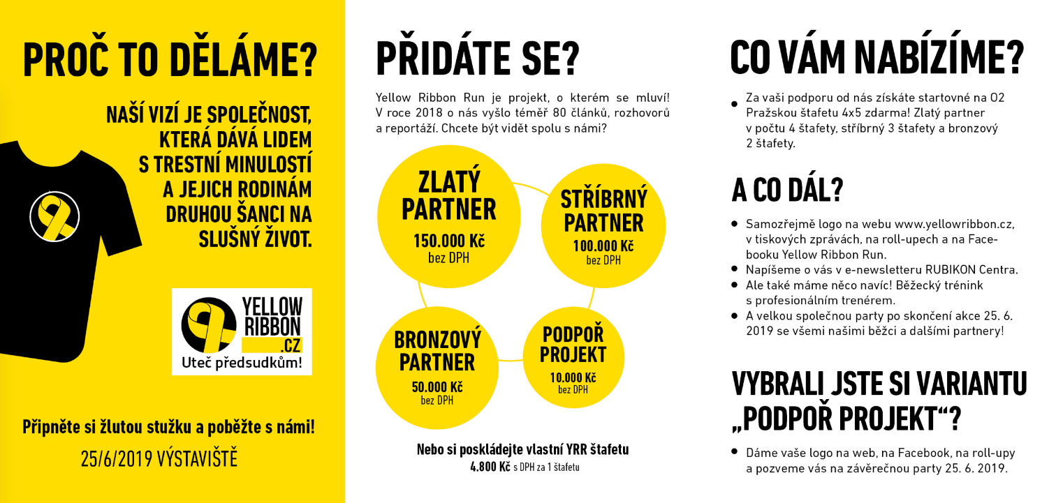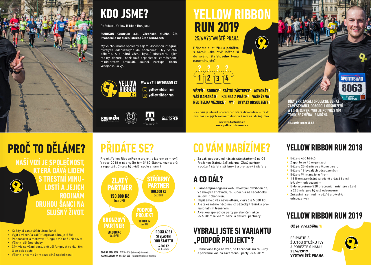 Flyers for Czech section of the Yellow Ribbon Project. YELLOW RIBBON PRISON RUN wants to engage the community in accepting ex-offenders and their families, giving them a second chance at life.